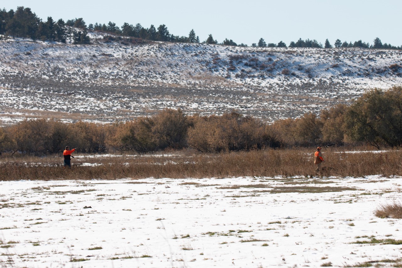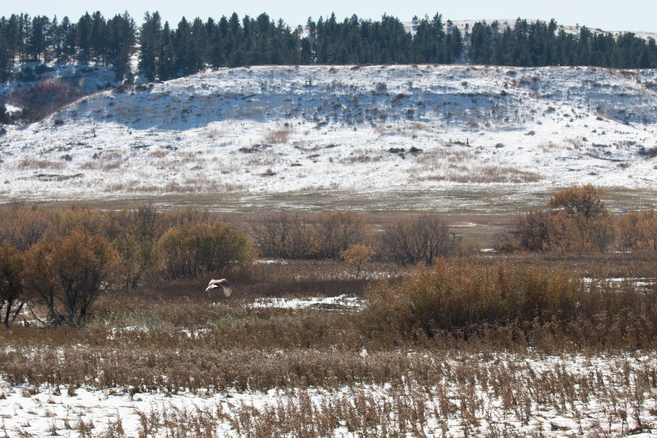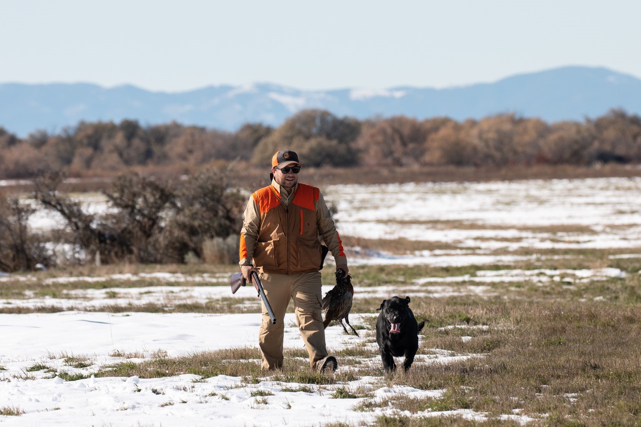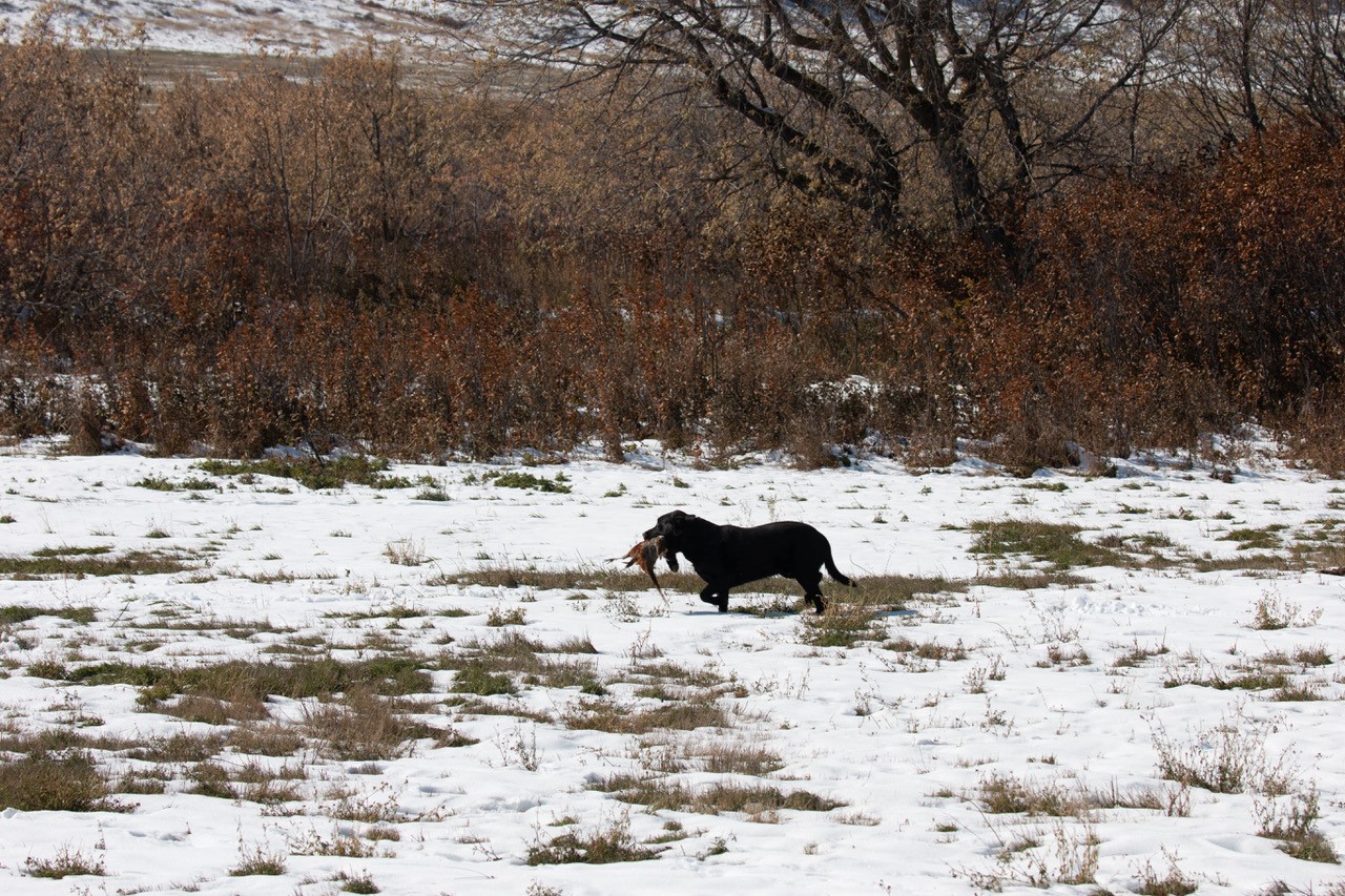 One ranch came to mind. The Teigen Ranch is famed for its excellent wing hunting. Around noon we packed up and left Lewistown, Mt. Within 30 minutes we arrived at the ranch. The ranch has seen excellent fall moisture with many inches of rain and snow. Hunting from an old calving barn heading west we focused on the riparian area around McDonald Creek. Definitely a Hot Zone of the 34,665 acre ranch. Currently they are rotating hay fields into small grains. Hay Barley has been the crop of choice and a good one it was. Right away the birds were on the move and always a bit ahead of us. After two hours the two of us reached our three bird limit. This was my third hunt with new lab Cy. He did well considering his experience. Opening day was amazing. Blue skies, 50 degrees, a little snow cover, and no wind provided a perfect afternoon with more birds than I could count. Unanimously the experts in the ride home figured well over 200+ birds in an area just over 300 acres. I feel fortunate to have hunted such an incredible ranch with family and friends. Teigen Ranch Information Here